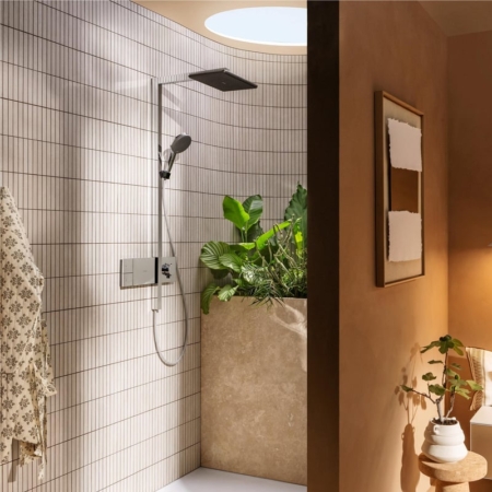 新款 hansgrohe Raindance Alive Q 拉絲黑鉻恆溫淋浴組 24580340