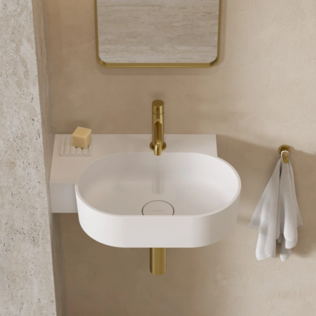 波蘭 OMNIRES OVO M+ 霧面白 右側檯上/壁掛兩用洗手盆 55 × 36 cm| OVO555UWPBM