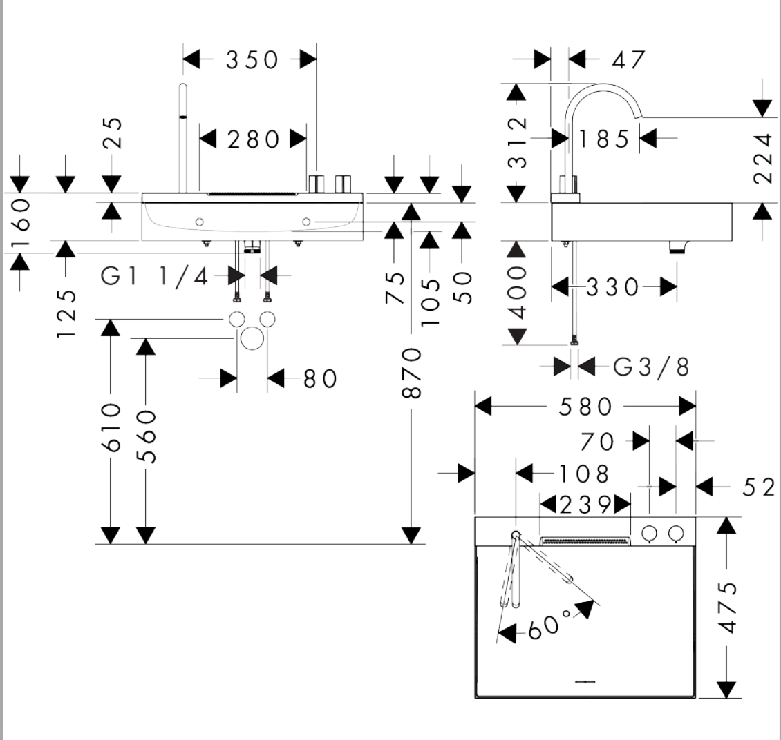 新款 hansgrohe Avalegra AquaUnit 580/475 拉絲青銅 一體式恆溫面盆組 22472140