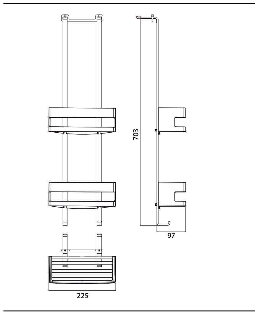 • 雙層置物空間:上層適合放洗髮精、沐浴乳等瓶罐,下層可懸掛毛巾或小物。
