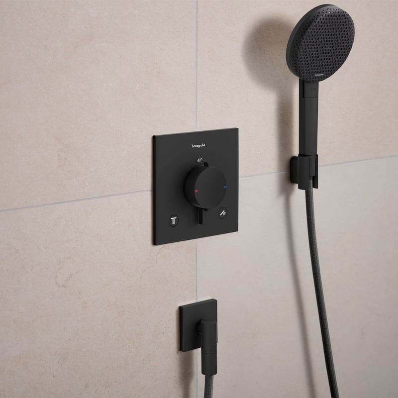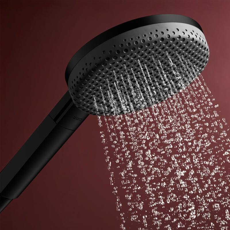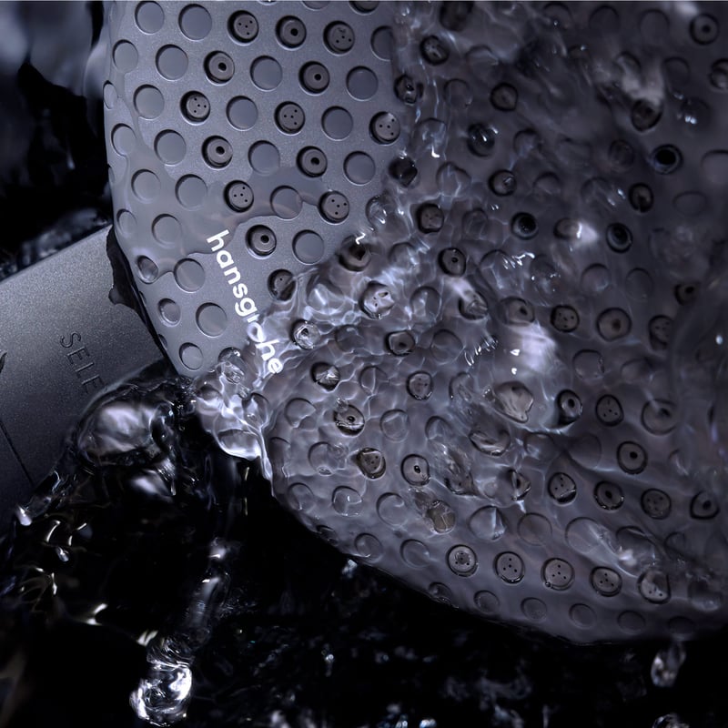 Matte Black 霧面黑: 這是一種極致純粹的黑。hansgrohe 的表面處理技術讓黑色呈現出細膩、均勻的霧面質感,沒有廉價塑膠的反光感。它能與水泥灰牆面、黑色鐵件或深色岩板完美呼應,展現出冷靜、理性的現代美學。