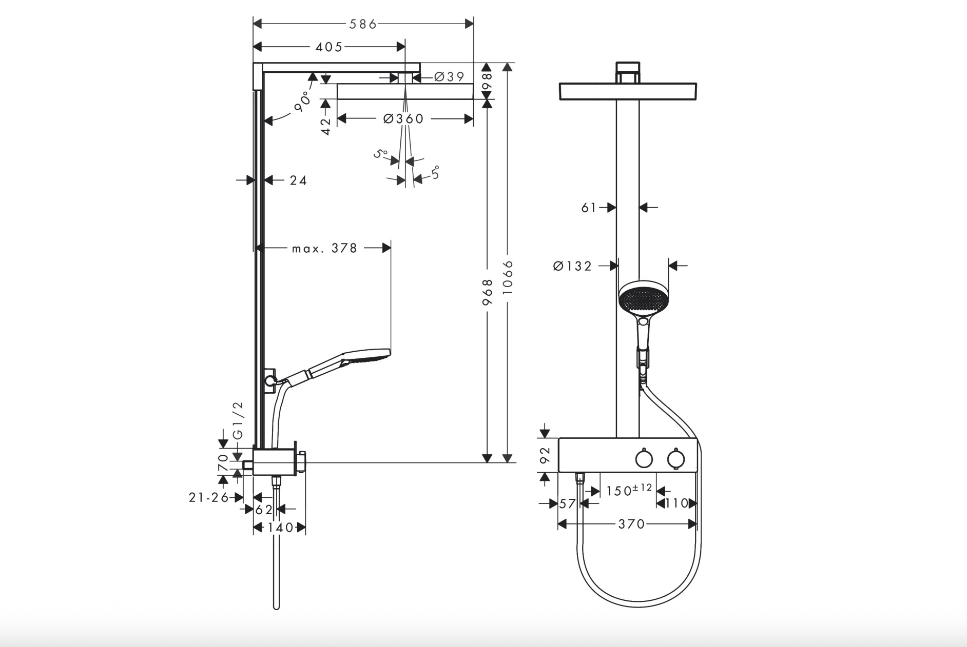 精準恆溫與安全防護: 搭載 hansgrohe 專利的 Thermostatic 恆溫控制系統,能於水壓變動時迅速平衡水溫。配備 SafetyStop 40°C 安全鎖定機制,有效防止水溫過高,確保淋浴環境的安全與穩定。
