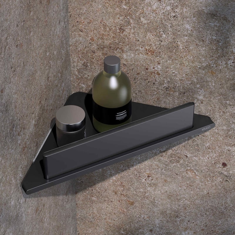 Keuco AVENO 霧面黑 轉角置物架附玻璃刮刀 14657370100