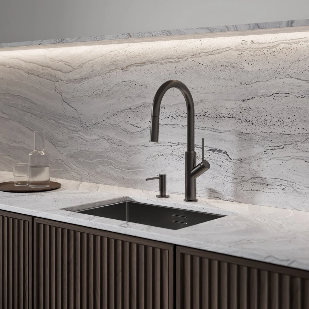 波蘭 OMNIRES BEND Series|拉絲石墨色 可拉式廚房龍頭 BE6455GR