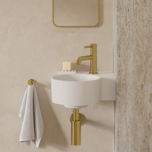 【客衛與小坪數的靈活選擇】 祥沐歐洲精品衛浴 特別引進這款具備壁掛與檯面兩用功能的單品。其精巧的尺寸專為台灣現代住宅中預算與空間皆需精準掌控的「精緻客衛 (Powder Room)」而生。結合 M+ 複合材質的細膩觸感與耐用性,即使在有限的空間內,也能展現對生活美學的堅持。