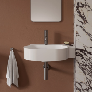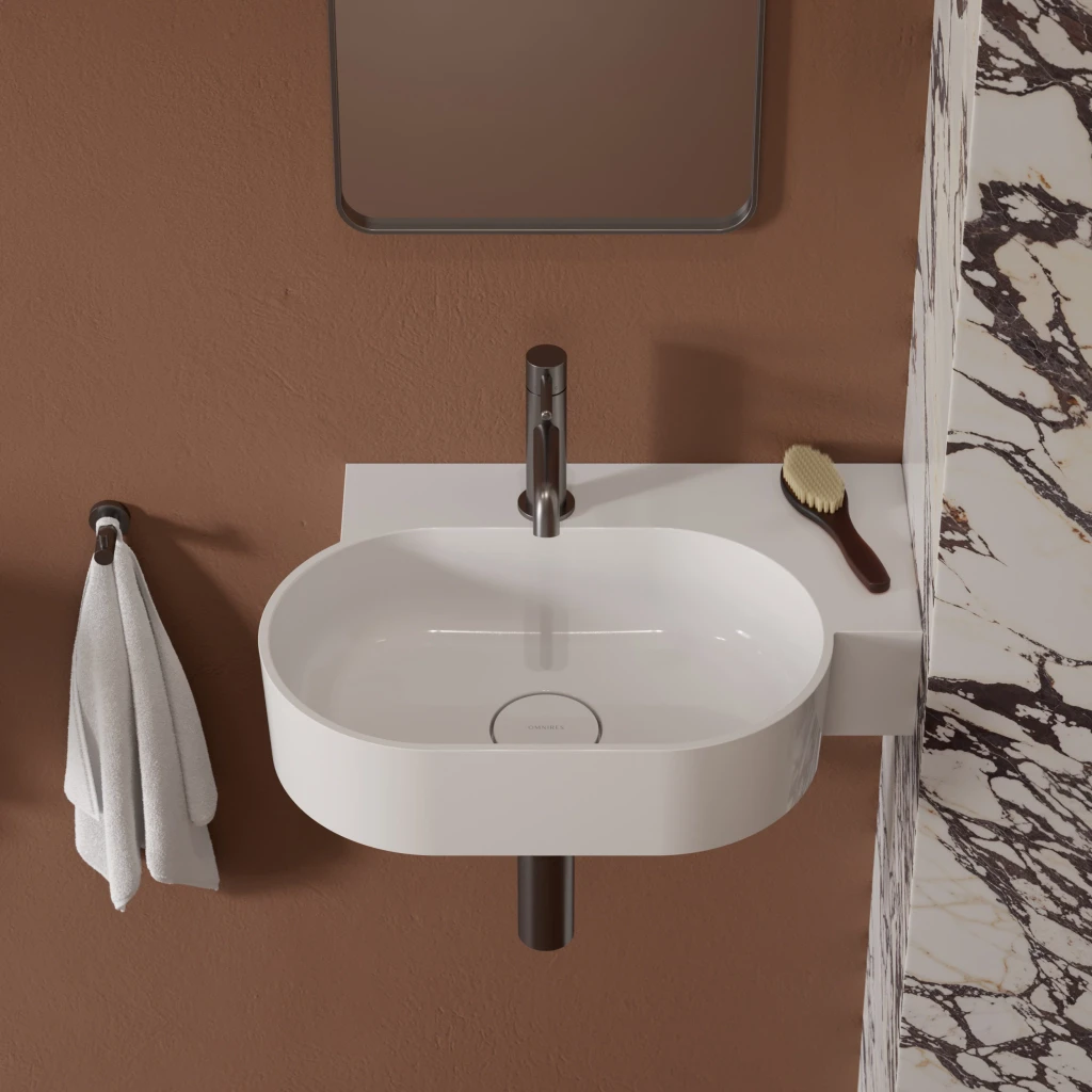 隱形的機能:盆體底部設有 隱藏式預鑽點,可依需求在平台處鑽孔安裝龍頭或給皂器,確保功能到位,同時維持整體造型的純粹性。