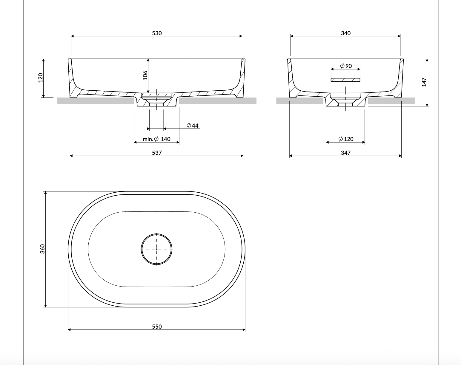 OVO M+ 檯上盆採用 OMNIRES 的專利材質 M+ composite: