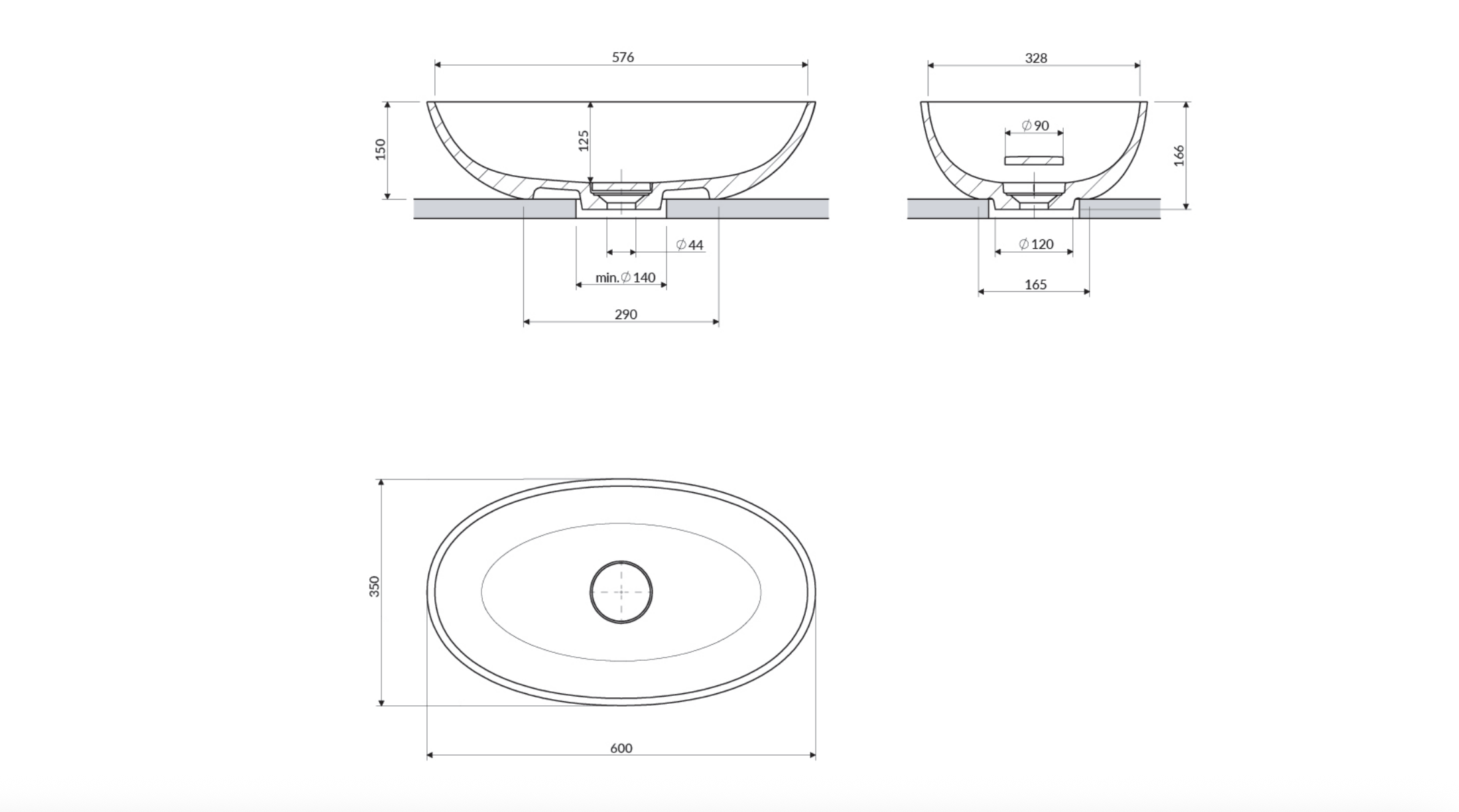檯面需預先開孔 Ø140 mm,