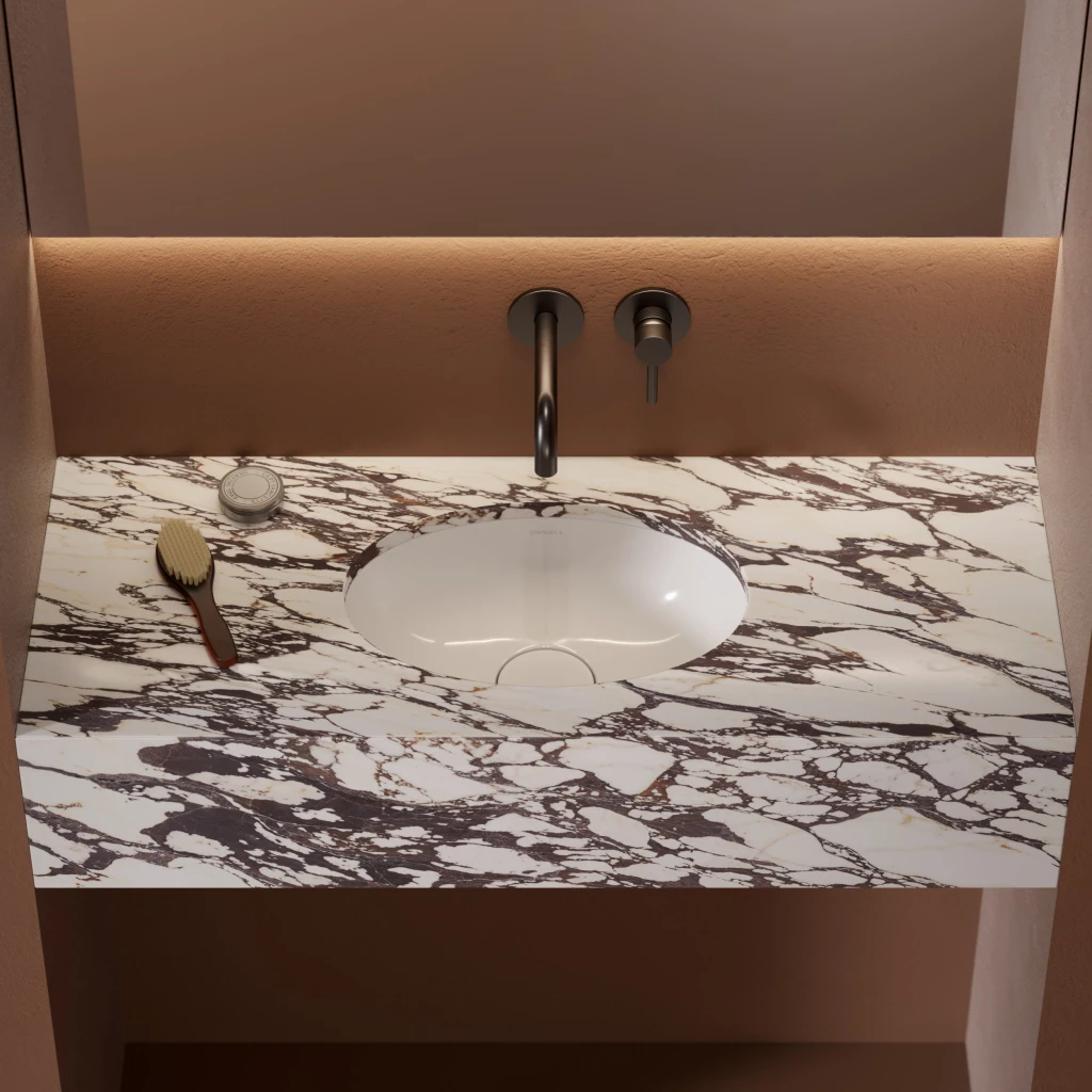 放在大理石、人造石、實木或清水模檯面下方,都不會顯得突兀
