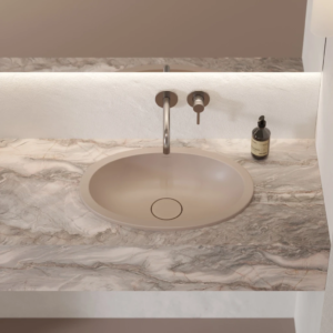 面盆完全隱藏在檯面下方