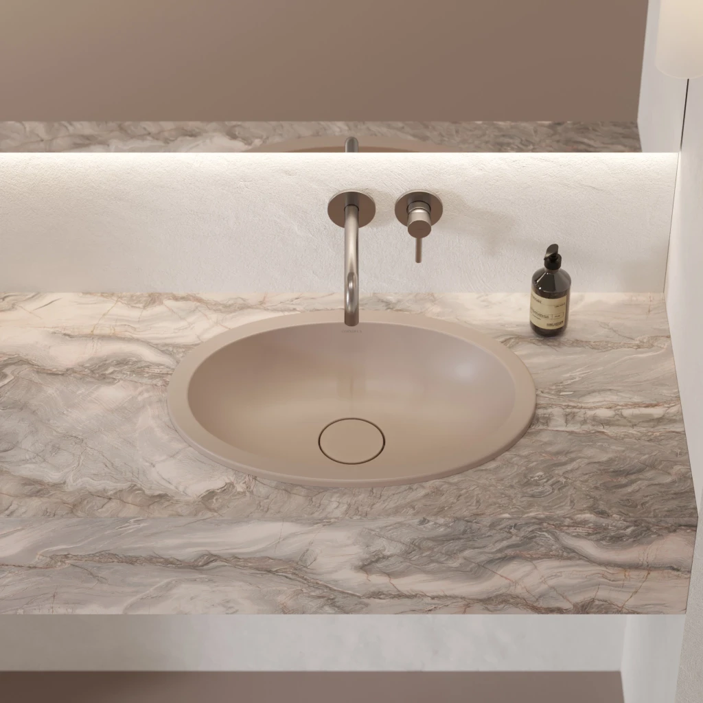 橢圓盆體安靜地懸在檯面之下