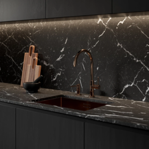 最佳適用場景: 專為講究空間溫度與精緻細節的現代居所設計。亮面銅 (Polished Copper) 特有的溫潤紅銅色澤,能為冰冷的廚房空間注入一股優雅的情感。它能完美呼應深色木紋、灰泥牆面或天然石材,不僅是實用的用水五金,更是空間中極具詩意的微型建築。